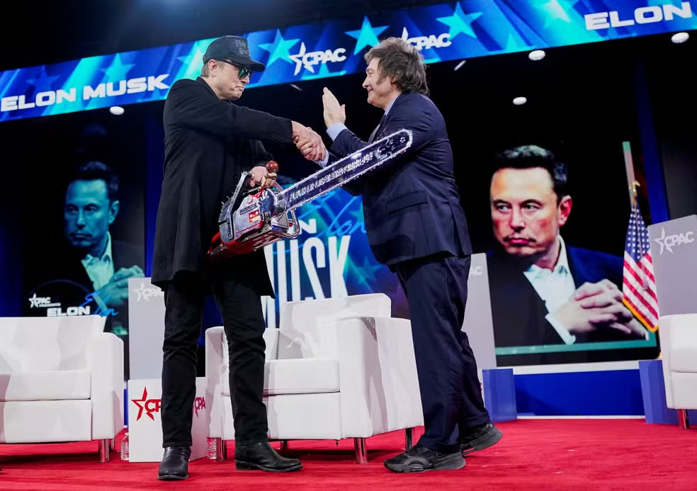 Enquanto conversava com o apresentador do evento, Musk foi surpreendido com uma motosserra, entregue por Milei como símbolo de seu compromisso com o corte de gastos públicos durante as eleições argentinas. Musk, demonstrando entusiasmo pelo presente, fez questão de exibi-lo em público, o que gerou grande entusiasmo na plateia.