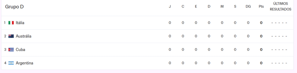 No domingo (28), será a vez da estreia do Brasil contra o México. Além disso, haverá duelos entre Marrocos x Espanha, Itália x Austrália e Cuba x Argentina.