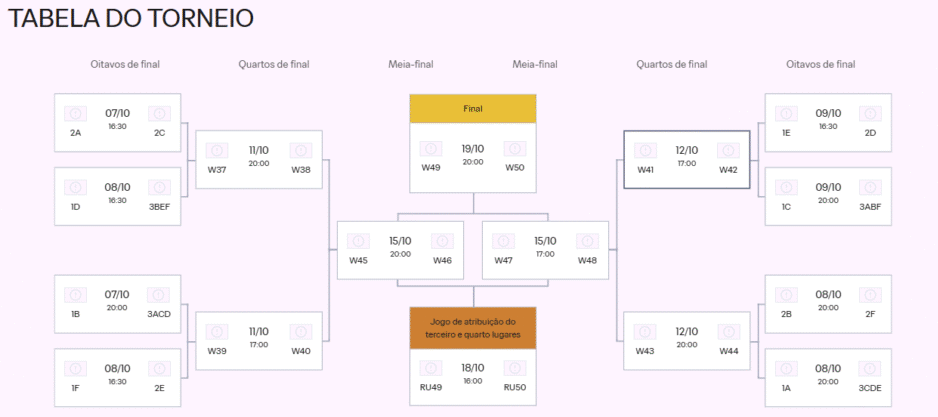 - A partir daí, a disputa passa a ser em sistema de mata-mata até a final, marcada para o dia 19 de outubro, em Santiago.